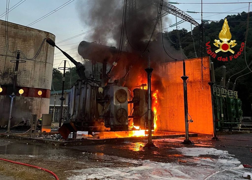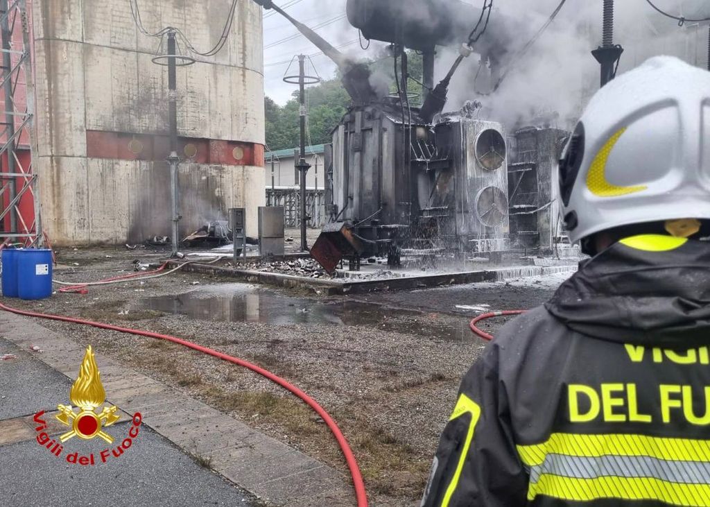 FOTO. Trasformatore con 6000 litri di olio in fiamme in una centrale di Cagno: vigili del fuoco al lavoro da stanotte