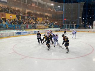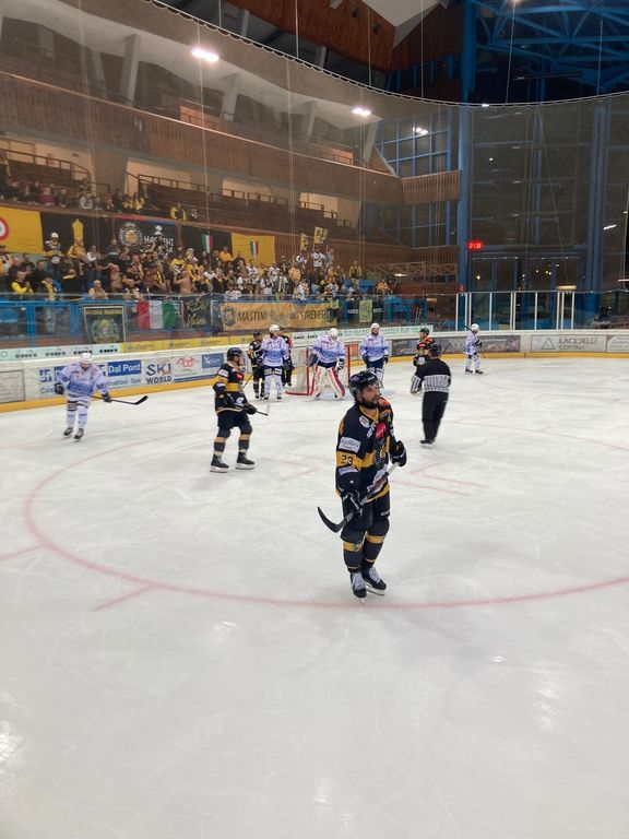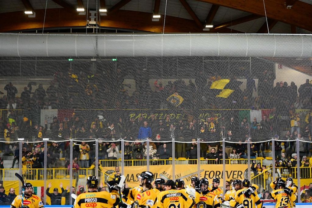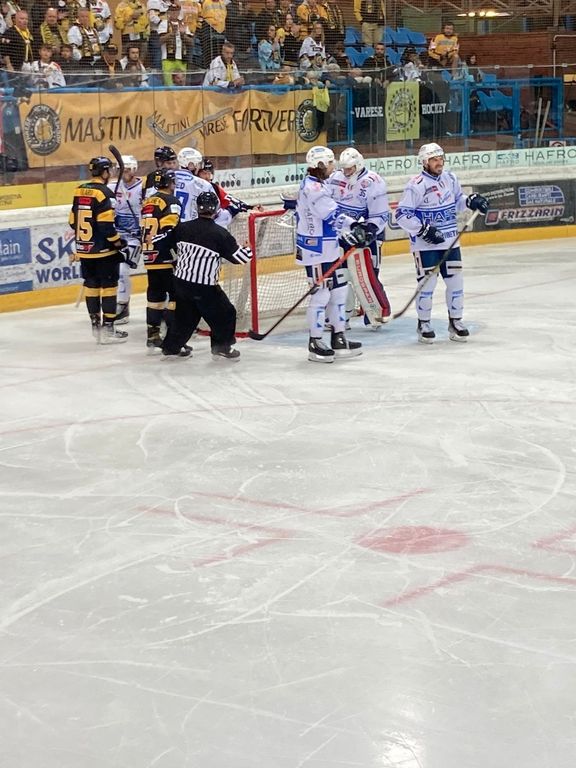 «Ringraziamo i ragazzi dell'Hockey Varese sostenuti da un pubblico straordinario» ha appena detto lo speaker mentre sul ghiaccio si sta svolgendo la premiazione
