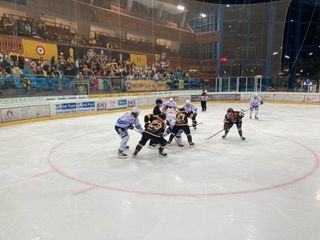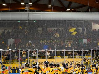 A pochi minuti dal via della Supercoppa diamo uno sguardo alle gradinate dell'Olimpico: tifosi gialloneri in maggioranza, almeno finora. Il ghiaccio è pronto. A breve l'ingresso in pista delle squadre. Il pubblico varesino è radunato dietro una delle porte ma anche sul rettilineo con bandiere, maglie e striscioni.