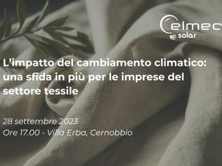 L’appuntamento, in programma il 28 settembre, a partire dalle ore 17.00, a Villa Erba, Cernobbio, sarà un'occasione per discutere le sfide riguardanti la sostenibilità che il comparto tessile deve affrontare e gli effetti della crisi climatica sul settore, in particolare sulla catena degli approvvigionamenti.
