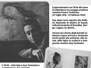 La Libreria degli Asinelli di Varese (via Bagaini 14) ospita Sara Tardonato, scultrice e insegnante d'arte, in un incontro serale, sabato 23 settembre alle 19, per ricordare la figura e l'opera del padre, il pittore varesino Franco Tardonato, caro e noto a molti in città.