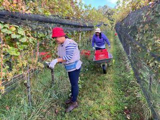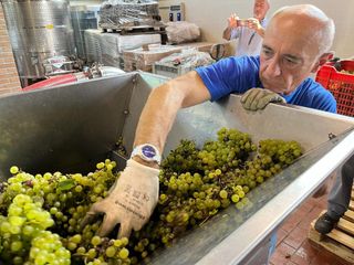 È stata un'annata non semplice, con una produzione che a causa delle bizze del clima si è ridotta al 50%. «C'è a chi è andata peggio - spiega l'enologo Giovanni - e si è visto azzerare il raccolto per colpa della grandine. Le reti ci hanno salvato. Qualitativamente però l'annata è ottima, i grappoli sono perfetti e il sole di quest'estate ha giovato alla maturazione». Una decina di collaboratori è impegnata nella raccolta tra i cinque ettari di filari. Non mancano sorrisi e battute, guidate dall'instancabile Joel, abile nel guidare il trattore e nel tenere alto il morale della truppa.