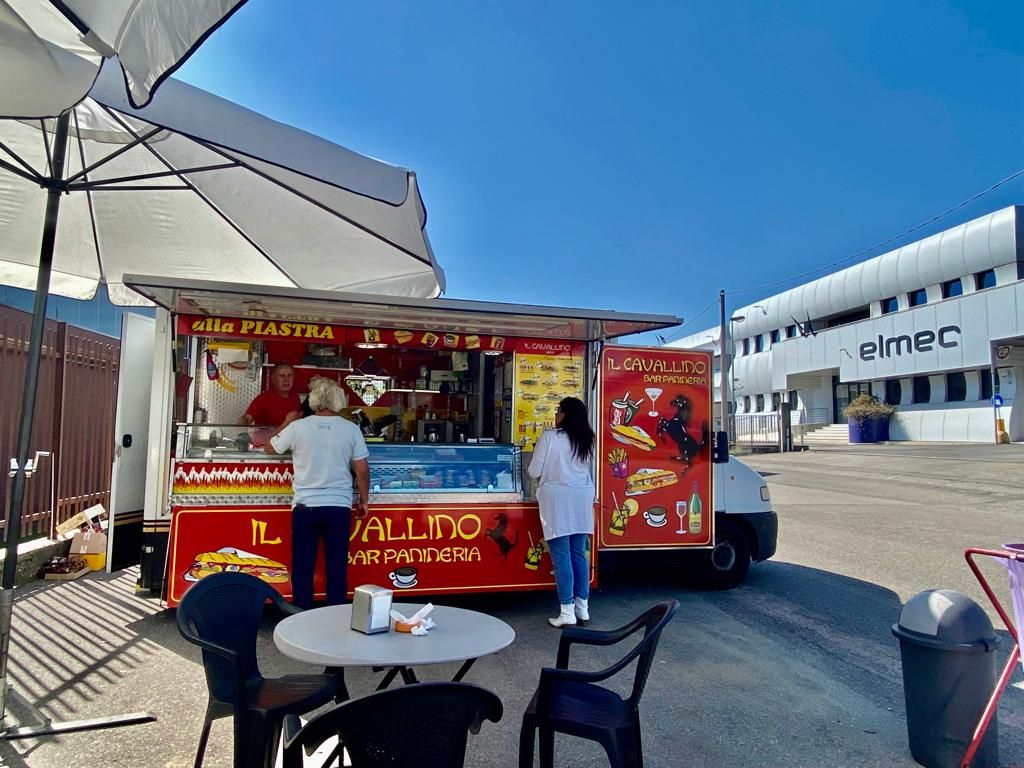 Dal 2008 placa l'attesa dei tifosi biancorossi di basket e calcio fuori dal palazzetto e dallo stadio con i suoi panini («Primo salamella, secondo porchetta, terzo con la cotoletta alla milanese ma anche wurstel e crauti»), dà sapore alle vittorie o addolcisce le sconfitte come solo lui sa fare, cioè con semplicità, sorriso e prodotti di qualità. Ma Michele Scaringella, con la sua panineria volante, è anche il ritrovo preferito per una veloce, ma non per questo poco gustosa, pausa pranzo per i dipendenti delle tante aziende di Brunello - il suo camioncino si trova in pausa pranzo fuori dalla Elmec - raggiunti anche con l'asporto: «Ma a volte arrivano a cercarmi apposta da fuori, si fermano ai miei tavolini o mi chiedono un panino da consumare a casa» ci dice davanti al suo Il Cavallino ovviamente rosso («In onore alla Ferrari, la mia grande passione»), dove dal 2008 fa tutto da solo con l'aiuto di alcuni collaboratori.