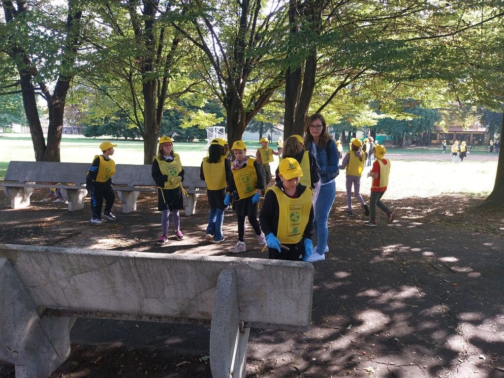 Insieme ai loro insegnanti, all'assessore Giorgia Adamoli e al consigliere Giovanna Caserta hanno pulito gli spazi verdi di Vedano: il Parco Spech, quello della Villa Fara Forni e altri luoghi connessi.