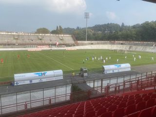 Entriamo in diretta dal Franco Ossola: giornata calda (22 gradi), poco pubblico per ora sugli spalti