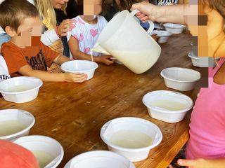 Grazie alla collaborazione di Anna e Mattia della Fattoria Il Vallone, ad aspettare i bambini al Parco non c'erano giochi o spettacoli, ma la bellezza della natura e della vita in fattoria: capre, caprette e tutto il necessario per imparare a mungere e a realizzare il formaggio.