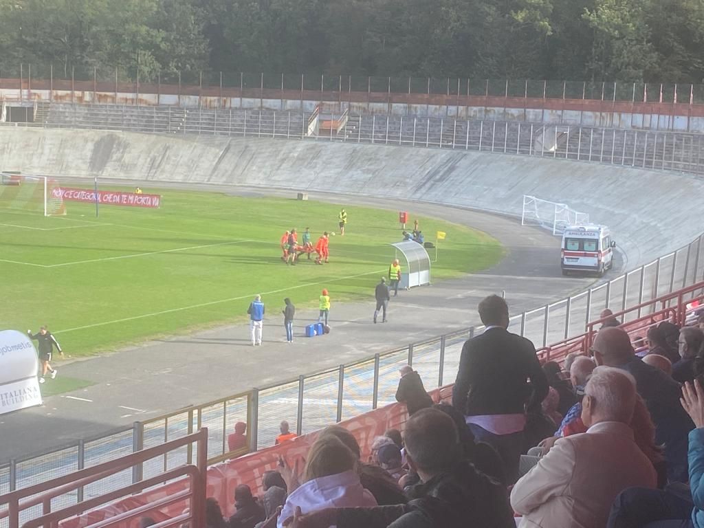44' Guri viene fatto salire immediatamente in ambulanza. Pubblico un po' scioccato