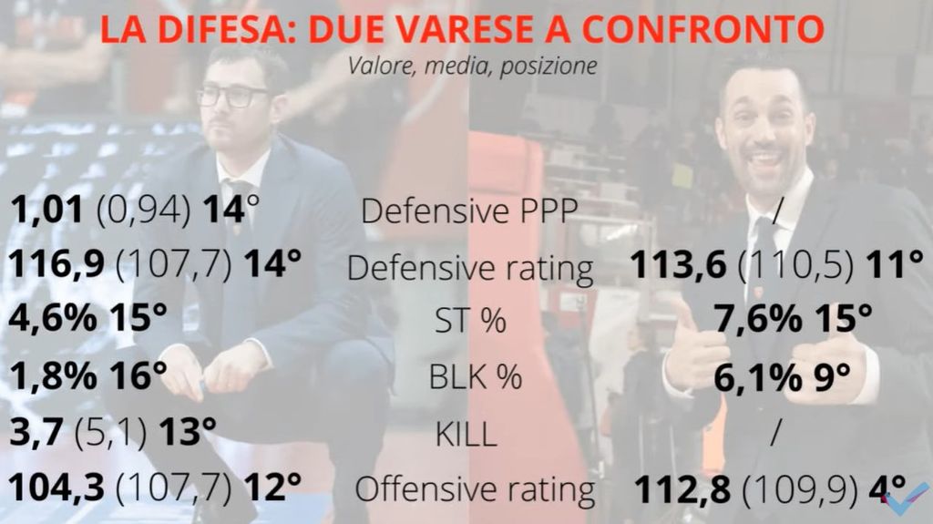 Il problema della difesa è stato affrontato con l’aiuto delle statistiche avanzate (nella foto in fondo): in diversi parametri la Openjobmetis di quest’anno non solo fa peggio dello scorso anno, ma occupa gli ultimissimi posti nel campionato. Anche nel dato dell’offensive rating la squadra di Bialaszewski non brilla: occupa il dodicesimo posto.