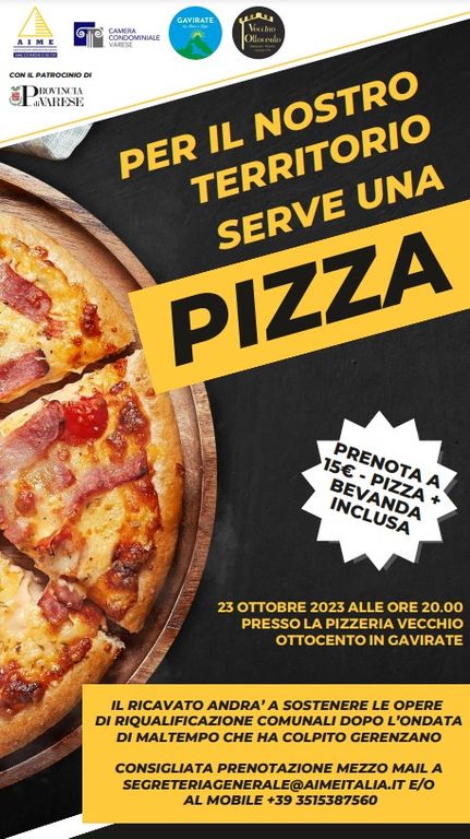 Una pizza per Gerenzano, un gesto tanto semplice quanto significativo. È questa l’iniziativa di AIME: una cena per raccogliere fondi destinati al Comune del saronnese per aiutare le vittime dell’alluvione che quest’estate ha lasciato, e lascia ancora tutt’ora, diversi cittadini del paese in difficoltà.