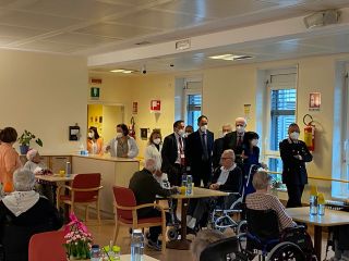 La visita è proseguita con un passaggio in alcuni reparti della RSA e del Centro Diurno Integrato. Il percorso osservato ha favorito l’incontro con alcuni anziani impegnati nelle attività quotidiane.