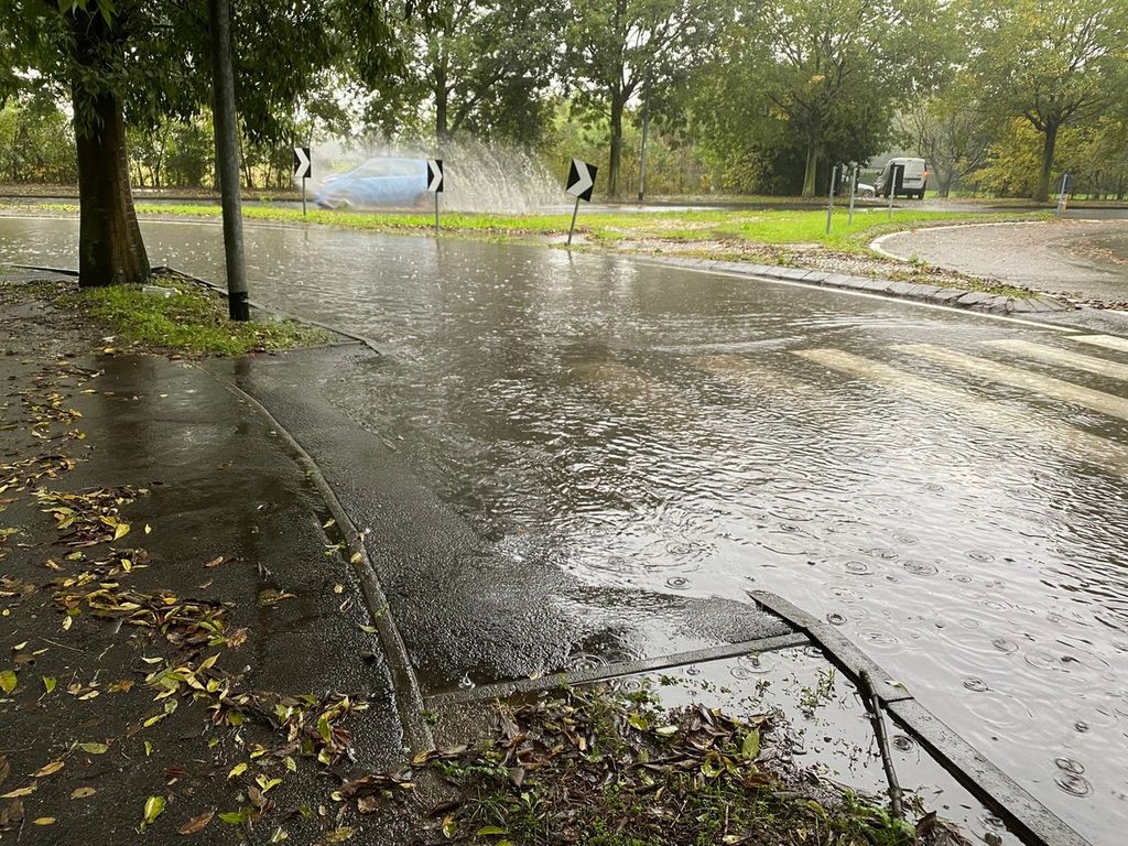 Pioggia battente e veicoli trasformati in mezzi anfibi sulle strade di Busto Arsizio. Le precipitazioni straordinarie di questi giorni si combinano alla caduta autunnale delle foglie, con conseguente formazione di pozzanghere ampie, ristagni, condizionamento del deflusso garantito dai tombini. Carreggiate invase dall’acqua sono state segnalate, tra l'altro, nelle vicinanze di Malpensa Fiere e in viale Pirandello (FOTO SOTTO), a intermittenza anche in via per Cassano.