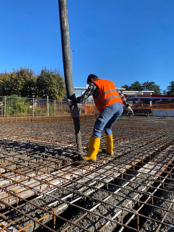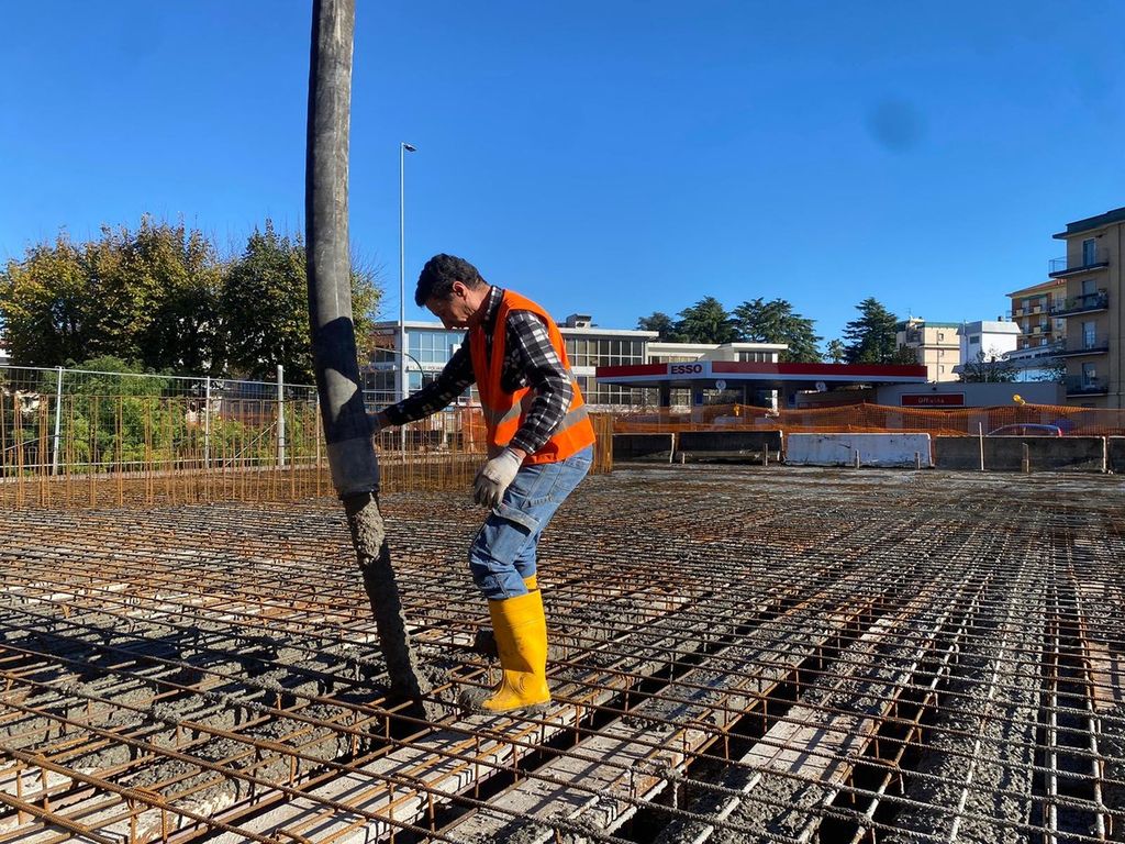 Dopo la posa della struttura con l’armatura in ferro, completata nelle settimane scorse, oggi operai e betoniere (quattro mezzi al lavoro) stanno gettando il cemento sul nuovo ponte che collegherà via autostrada con viale Borri, una delle opere fondamentali del progetto che darà una nuova concezione viabilistica al comparto.