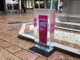 Il blocco di ghiaccio, a forma di parallelepipedo, presenta un adesivo rosa con cinque stelle e una scritta che riporta la frase: "Non cascarci anche tu". L'apparizione ha suscitato forte curiosità anche tra i commercianti del centro, nessuno dei quali ha saputo spiegarsi il senso di questa presenza.