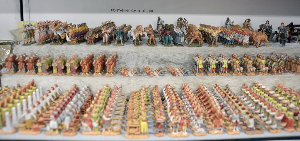 «Abbiamo presepi con statue in legno intagliate in Val Gardena, poi i napoletani di terracotta vestita e i toscani, di cartapesta e terracotta cruda. Siamo gli unici ad avere tutte queste varietà. Il più richiesto è il napoletano, ma anche gli altri hanno parecchi estimatori. Naturalmente teniamo anche le statuine di plastica di due ditte toscane, Fontanini e Moranduzzo».