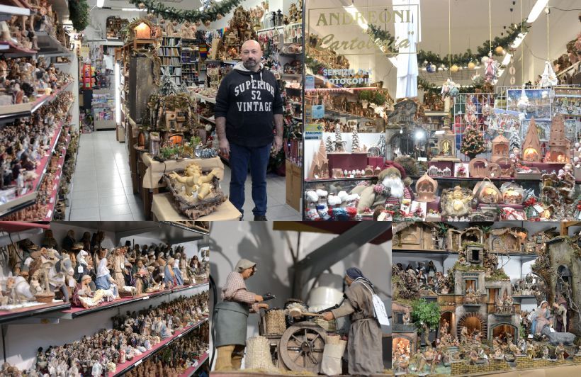 «Siamo la quarta generazione appassionata di presepi», dice la titolare Chiara Andreoni, che con il marito Stefano si occupa di allestire ogni anno scansie e vetrine speciali. «Il negozio lo fondò la bisnonna Giuseppina, e la cartoleria un tempo era più avanti nella via. Poi subentrò mia nonna, che purtroppo morì in giovane età, e quindi i miei genitori, Iride e Giancarlo, che aprì anche una legatoria».