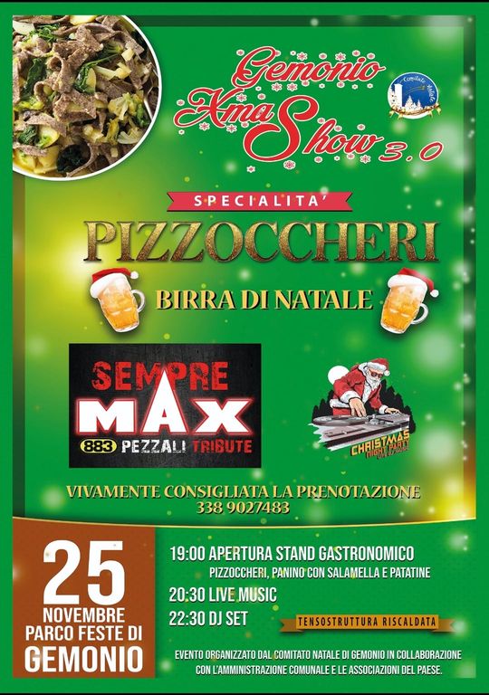 Esattamente ad un mese dal Natale il Comitato apre le danze con una serata all'insegna della buona cucina valtellinese e un concerto live con musica che coinvolge tantissime generazioni: un tributo a Max Pezzali e agli 883.