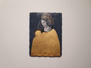 L’esposizione, prosegue Silvia Vacca, «segue l’idea di un percorso celeste: siamo partiti dalle costellazioni, unendo questo al tema sacro». Ad aprirla è la tavola della “Virgo lactans” di Lara Martinato, opera di una collezione privata con la cui dolcezza si intende onorare il Natale. «È dipinta in tempera grigio di Payne, richiamando tecniche antiche su tavola, e oro zecchino. Nella stessa sala sono presenti anche i disegni preparatori».