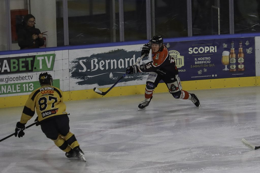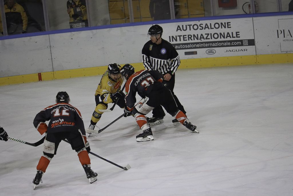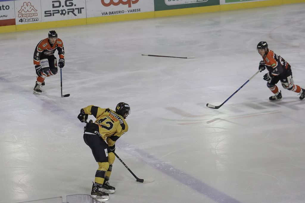 Nel primo tempo, che si chiude con il rospo dello 0-1 nello stomaco, tutta la differenza è questa: il Caldaro ha un'occasione da gol, ma proprio una, non casualmente dopo che il Varese fallisce con Perino il vantaggio, e a poco più di un minuto dall'intervallo la mette dentro con il segugio Cappuccio che, nascosto a Perla, ne approfitta mandando il disco nell'angolino basso (0-1).