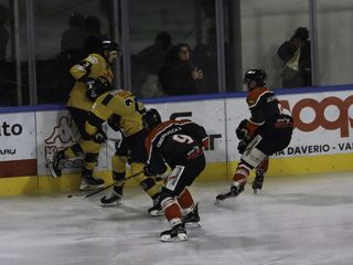 Secondo tempo al livello del terzo, con alcuni lampi accecanti di un Varese che, partito in svantaggio, quando si fa prendere la mano dall'anima e dalla folla, schiaccia al muro perfino il Caldaro: succede nella rimonta da Mastini dopo aver rischiato lo 0-2 (Jonas Oberrauch arriva a tu per tu con Perla, va da sé, superlativo). Lì, quando il cinismo ospite - un tiro, un gol - sembra avere la meglio sulle fatiche di Ercole che i padroni devono mettere in pista per bucare la rete, ecco il pari brutto, sporco e cattivo di Bertin (1-1), Tilaro che finalmente fa il Tilaro, si accentra da destra e mette nell'angolino il 2-1 e poi, ancora, di fronte al morso del 2-2 del cobra Raphael Felderer, ecco i minuti finali di tremendismo giallonero, favoriti dai molti falli con penalità degli ospiti. È Thor Naslund, personificazione del fulmine, della folgore e del tuono, a colpire con la sua saetta dalla blu e poi Piroso, spinto dalla folla in ebollizione, a sfiorare il 4-2 colpendo una traversa che trema ancora.