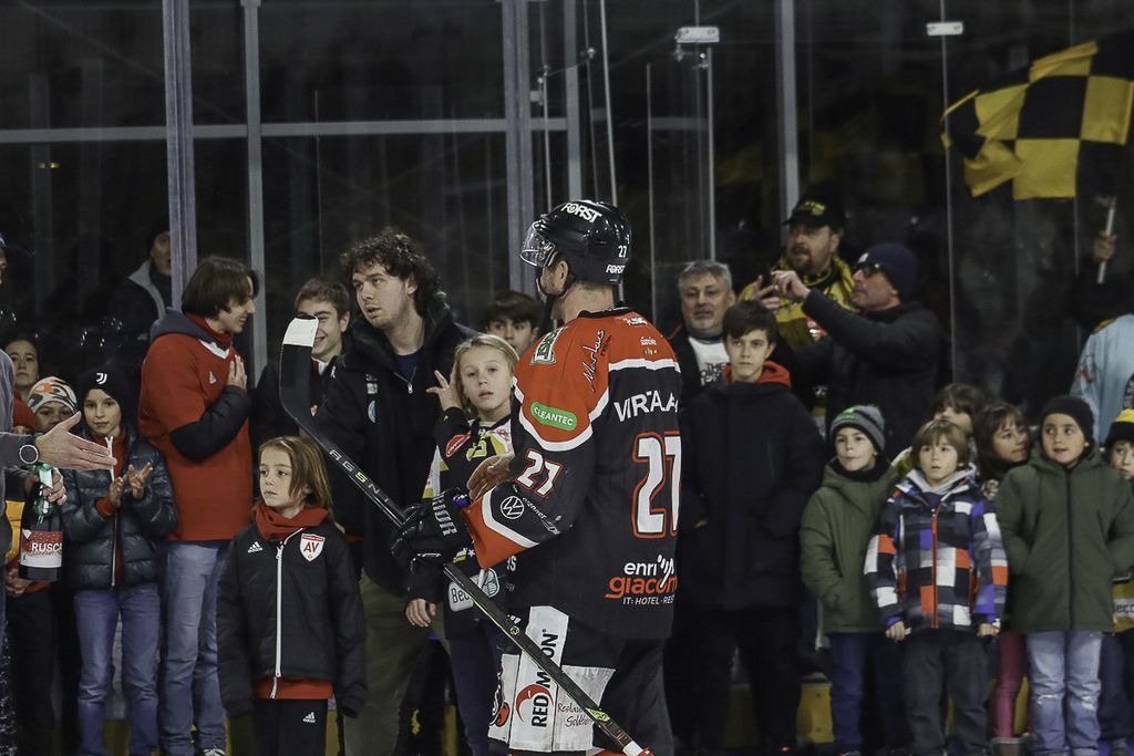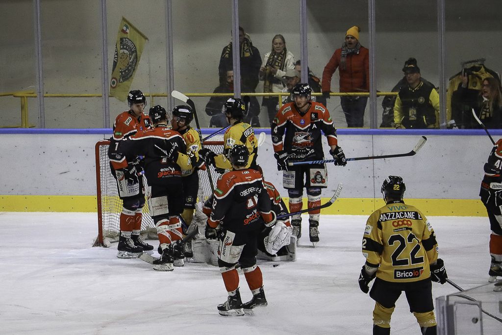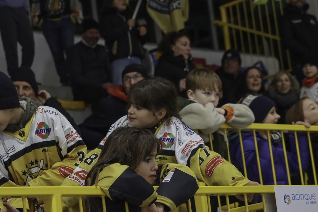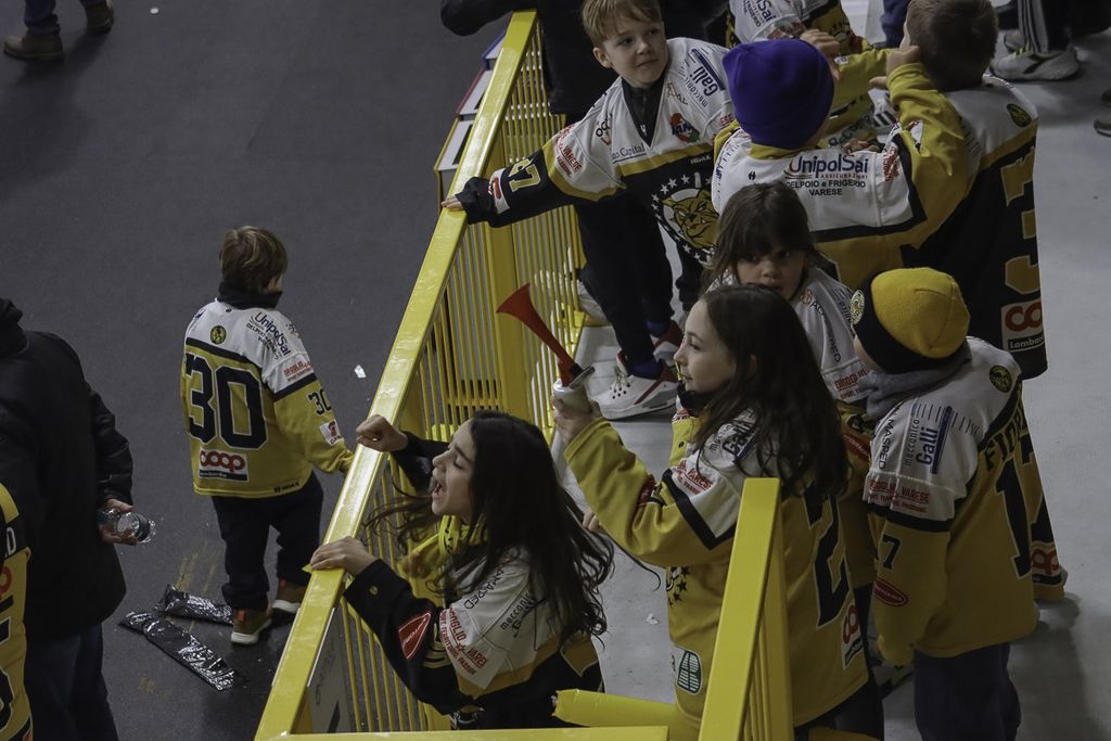 Il 6-5 al decimo rigore a oltranza del Varese al Caldaro (leggi QUI) e il tifo del centinaio di ragazzini dell'Accademia Varese, estasiati nello scendere sul ghiaccio a fine partita per dare il cinque e toccare i giganti gialloneri e altoatesini, ma anche quello della famiglia dello Scoiattolo e della Varesina, con Max Di Caro e mister Spilli ormai al loro posto di battaglia in tribuna ogni sabato sera al palaghiaccio perché hanno trovato i loro stessi valori nella famiglia dei Mastini, sono alcuni dei volti di una partita deliziosa che raduna tutto ciò che fa innamorare dell'hockey e dell'ambiente che lo circonda a Varese.