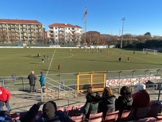 20' "Dai ragazzi noi ci crediamo" canta battendo sul tamburo l'unico ultrà del Pinerolo: uno spettacolo (anche perché in campo non sta accadendo granché)