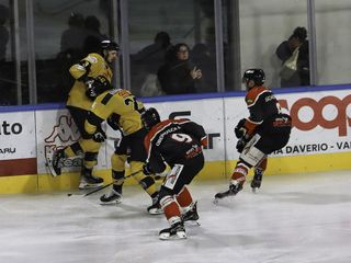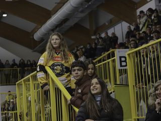 Il 6-5 al decimo rigore a oltranza del Varese al Caldaro (leggi QUI) e il tifo del centinaio di ragazzini dell'Accademia Varese, estasiati nello scendere sul ghiaccio a fine partita per dare il cinque e toccare i giganti gialloneri e altoatesini, ma anche quello della famiglia dello Scoiattolo e della Varesina, con Max Di Caro e mister Spilli ormai al loro posto di battaglia in tribuna ogni sabato sera al palaghiaccio perché hanno trovato i loro stessi valori nella famiglia dei Mastini, sono alcuni dei volti di una partita deliziosa che raduna tutto ciò che fa innamorare dell'hockey e dell'ambiente che lo circonda a Varese.