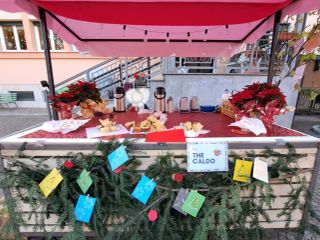 Tè caldo, lavoretti dei bambini, stelle di Natale ma anche confezioni beauty, palloncini e oggetti artigianali: sembra la descrizione di uno dei tipici mercatini che animano i paesi di montagna in questo periodo e invece, proprio accanto alle casette, si possono vedere banchi e libri.