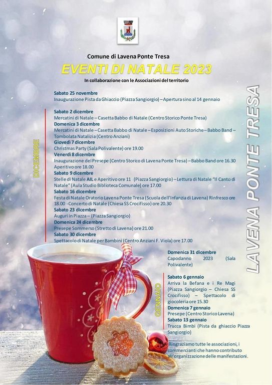 Un calendario degli eventi di Natale fitto e vario quello diffuso dall’amministrazione comunale di Lavena Ponte Tresa. Un programma che prevede una varietà di momenti dedicati a tutti che proseguiranno fino alle prime settimane del nuovo anno.