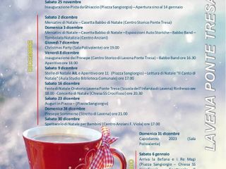 Un calendario degli eventi di Natale fitto e vario quello diffuso dall’amministrazione comunale di Lavena Ponte Tresa. Un programma che prevede una varietà di momenti dedicati a tutti che proseguiranno fino alle prime settimane del nuovo anno.