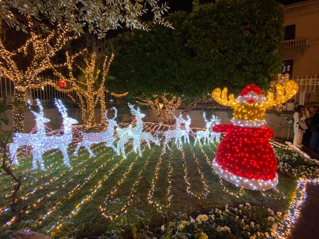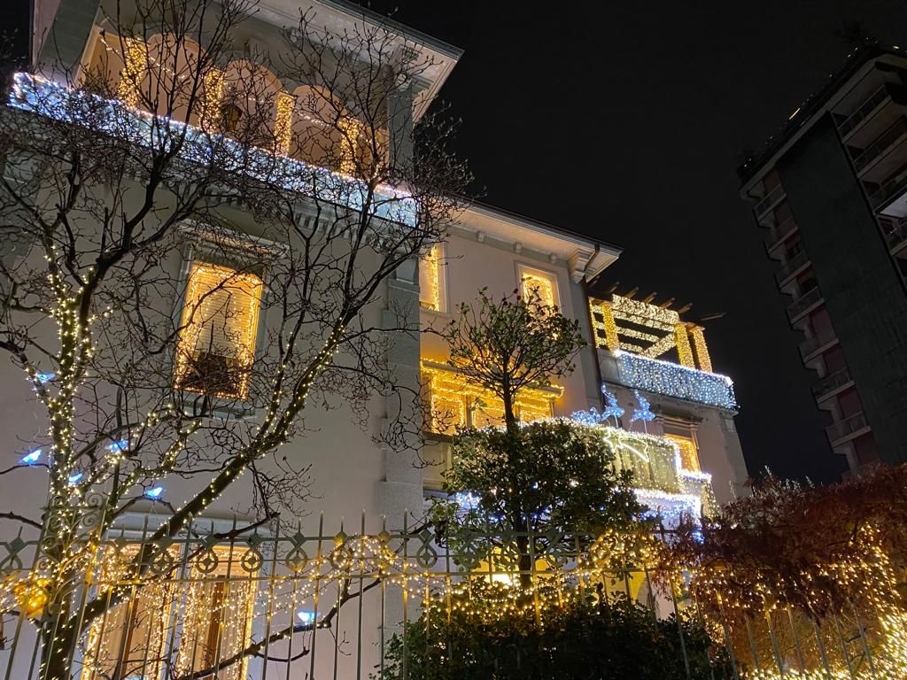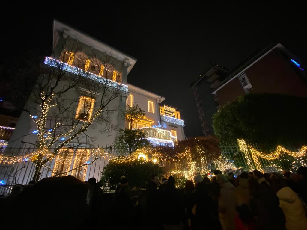 Oltre 300mila i led che alle 17.30 si sono accesi all’unisono, facendo brillare la villa liberty del centro.