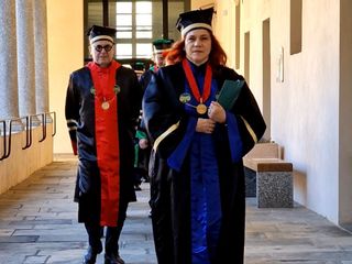 In toga i precedenti rettori dell’ateneo Renzo Dionigi e Alberto Coen Porisini, il prorettore vicario Stefano Serra Capizzano e i direttori degli otto dipartimenti dell’Insubria: Giulio Carcano, Mauro Ferrari, Luigina Guasti, Maria Pierro, Michela Prest, Francesca Ruggieri, Nicoletta Sabadini, Luigi Valdatta, nonché il presidente della Scuola di Medicina Alberto Passi.