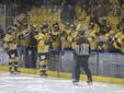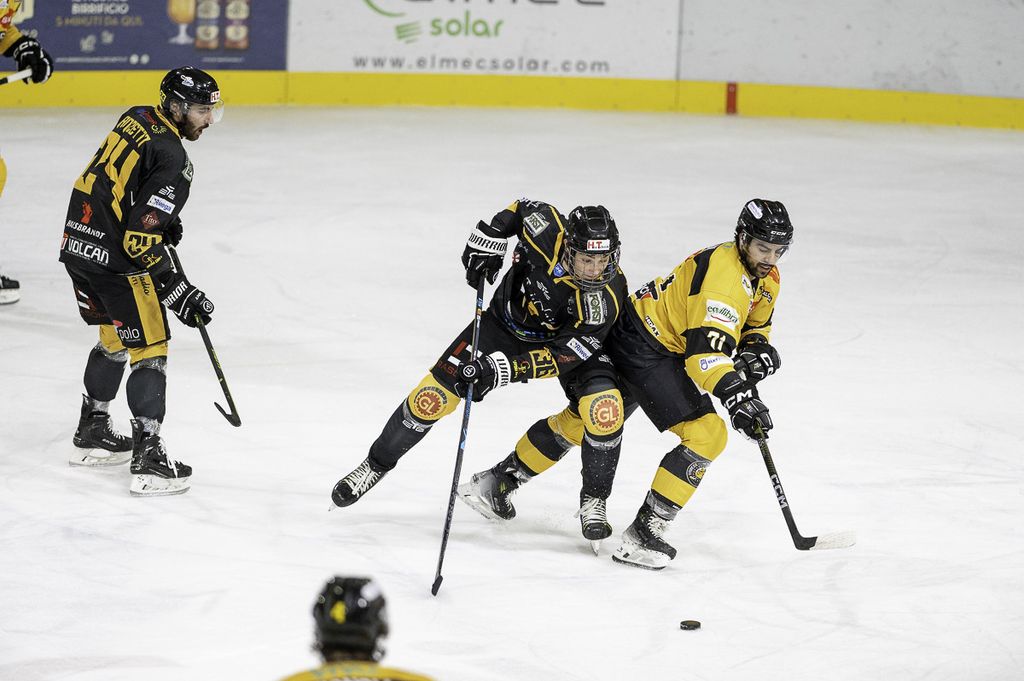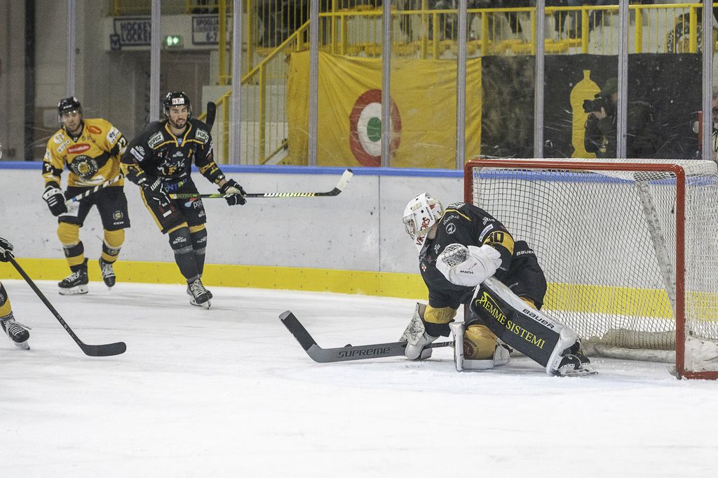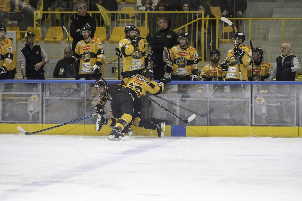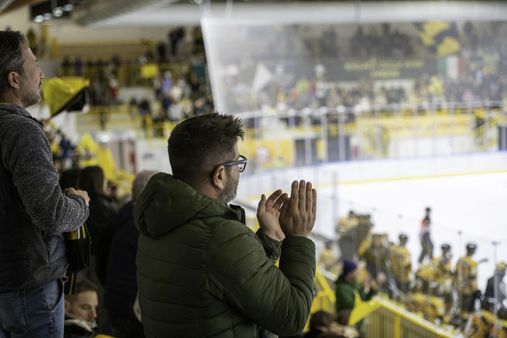Vamos, Hector. E adesso regalaci il sombrero sotto cui nascondi una doppietta, un assist e quell'energia che fa venire voglia di gettarsi sul ghiaccio insieme a te. Vamos Hector, spinto da compagni fantastici che gli concedono il solitario giro di pista finale con il popolo giallonero in delirio dietro le balaustre solo per lui. E tu, Rocco Perla, con quella parata impossibile a 10 secondi dalla fine, da sdraiato, su Nicolao che pensava di avere già insaccato il disco del 4-4 e dell'overtime, continua a spiegare perché gli altri hanno in porta soltanto un portiere, mentre noi ci affidiamo a una scintilla di ragazzo con guanti e gambali, troppo veloce per essere vista quando si fonde con gli spalti e, nel momento di vivere o morire, vive. Oh se vive. Oh se viviamo e godiamo.