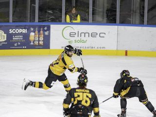 Vamos, Hector. E adesso regalaci il sombrero sotto cui nascondi una doppietta, un assist e quell'energia che fa venire voglia di gettarsi sul ghiaccio insieme a te. Vamos Hector, spinto da compagni fantastici che gli concedono il solitario giro di pista finale con il popolo giallonero in delirio dietro le balaustre solo per lui. E tu, Rocco Perla, con quella parata impossibile a 10 secondi dalla fine, da sdraiato, su Nicolao che pensava di avere già insaccato il disco del 4-4 e dell'overtime, continua a spiegare perché gli altri hanno in porta soltanto un portiere, mentre noi ci affidiamo a una scintilla di ragazzo con guanti e gambali, troppo veloce per essere vista quando si fonde con gli spalti e, nel momento di vivere o morire, vive. Oh se vive. Oh se viviamo e godiamo.