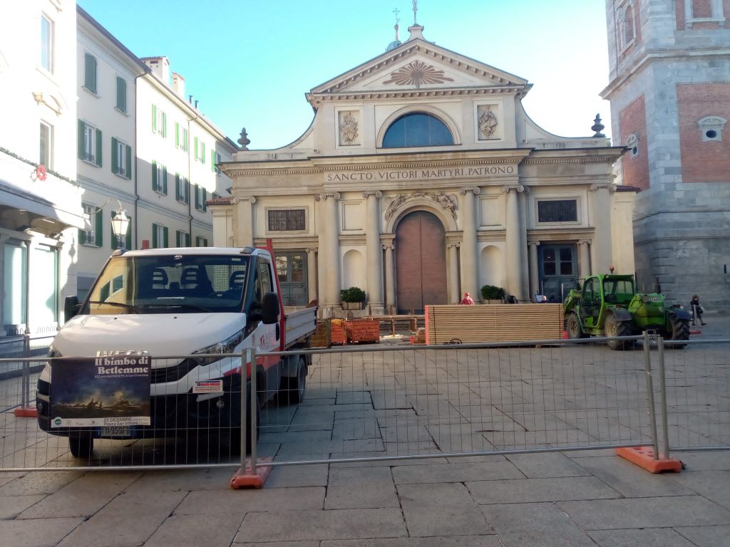"Il bimbo di Betlemme" arriva a Varese. Sono cominciati stamattina i lavori in piazza San Vittore per montare il palcoscenico che ospiterà il presepe vivente, previsto per il 22 dicembre, con la regia di Andrea Chiodi.