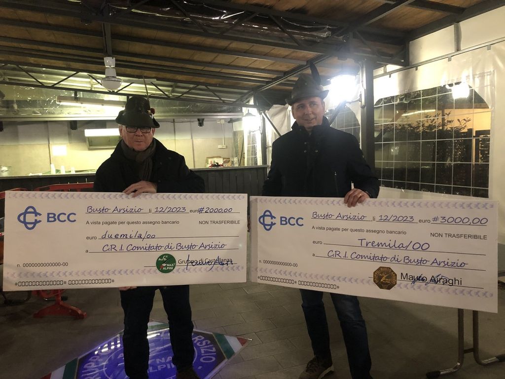 Anche il gruppo degli Alpini di Castellanza ha dato manforte staccando un assegno di 2mila euro che va a sommarsi ai 3mila euro di quello di Busto Arsizio. «Abbiamo ritenuto opportuno e doveroso associarci a Busto Arsizio per la Croce rossa che è un’entità che tutti noi conosciamo», ha aggiunto il capogruppo della sezione di Castellanza, Dario Crenna.