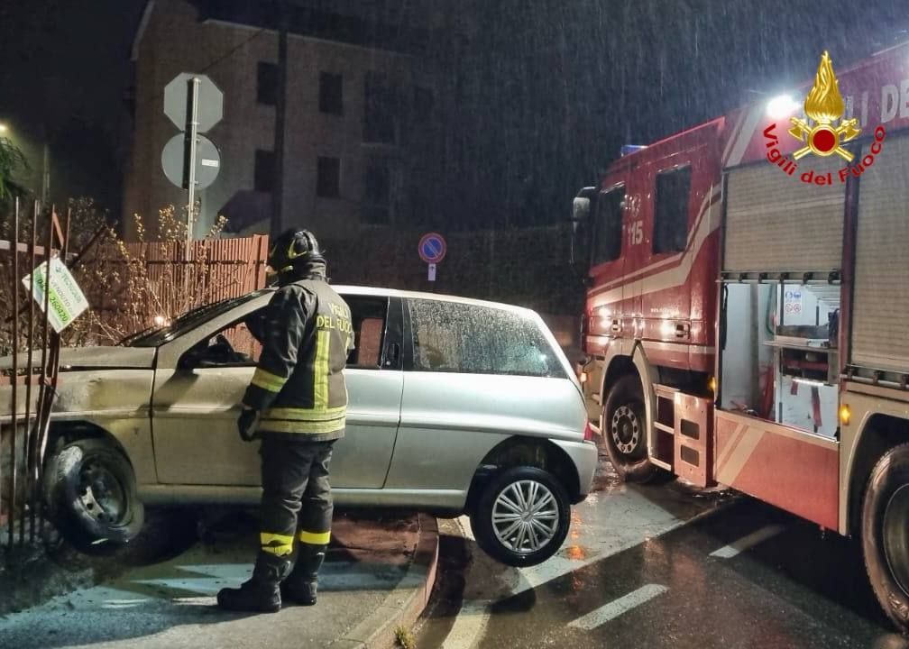FOTO. Perde il controllo dell'auto e sfonda la recinzione di una casa a Cardano Al Campo, ferito un 29enne
