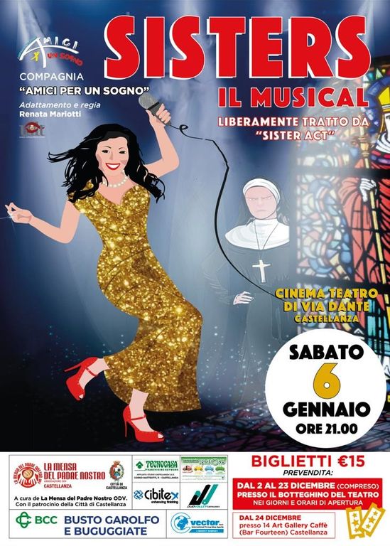 Alle ore 21, poi, presso il Teatro di via Dante verrà proposto il musical Sisters portato in scena dalla Compagnia teatrale Amici per un sogno di Gravellona Toce. Il musical, liberamente tratto da “Sister Act” con l’adattamento e la regia di Renata Mariotti, è presentato da La Mensa del Padre Nostro.