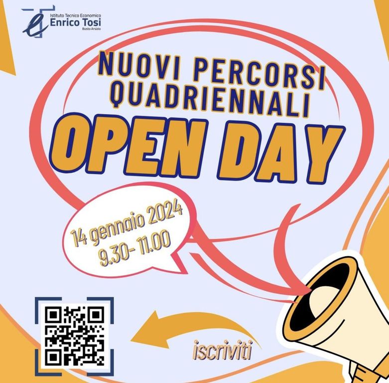 Il 14 gennaio alle ore 9.30 e alle ore 11 (solo su prenotazione al form inquadrabile nel QR CODE - locandina in allegato), all'Ite Enrico Tosi di viale Stelvio si terrà uno speciale open day per presentare una novità particolarmente interessante per l’anno scolastico 2024/2025.