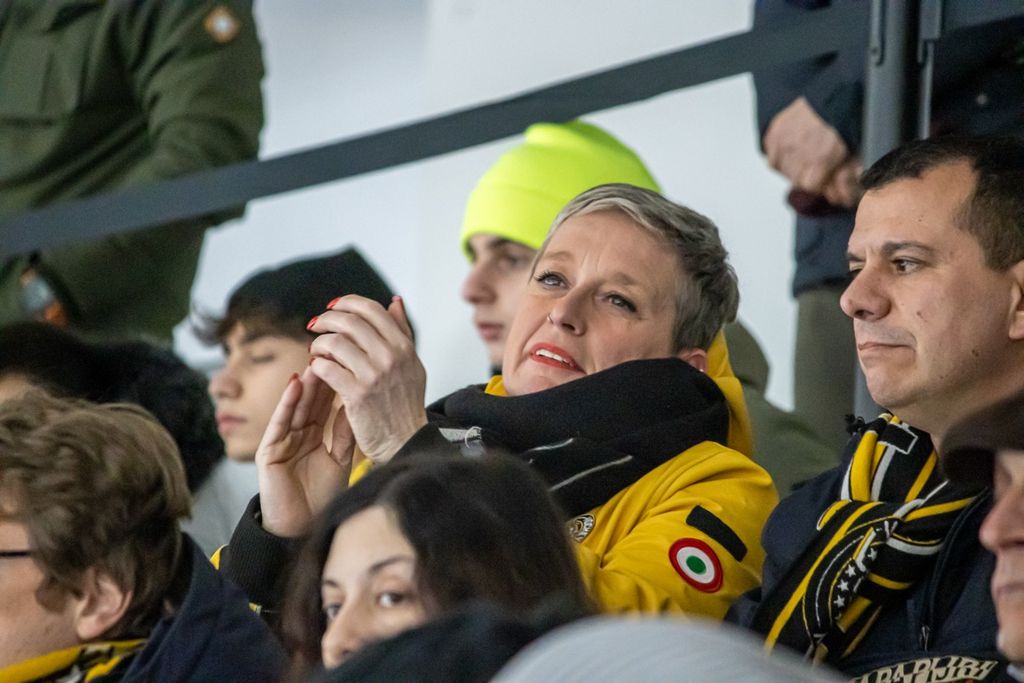 Il popolo giallonero e i Mastini Forever, feriti nell'orgoglio nell'ultima trasferta a Pergine dalle esultanze irriverenti e gratuite di Carmine Buono&C., ha reagito da par suo: organizzando una trasferta di massa e presentandosi molto più numeroso di quanto accadde nella regular season. Vediamo se qualcuno oserà sfidarlo anche stasera. Oppure se si accontenterà di provare a vincere soltanto in pista, come fanno i veri campioni o chi punta a diventarlo.