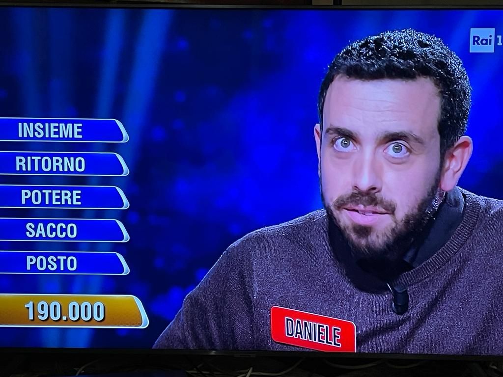 Questa sera il concorrente del gioco finale del preserale di Rai 1 “L’Eredità” ha avuto l’intuizione giusta ed è riuscito a trovare la parola da 190.000 euro. Daniele, medico umbro di Foligno, in provincia di Perugia, ha iniziato la sua partecipazione al game show venerdì 5 gennaio e ha vinto al gioco finale un totale di 285.000 euro. Nella fortunata Ghigliottina di questa sera è riuscito a indovinare tutte le parole corrette senza quindi mai dimezzare il montepremi e, con l’intuizione giusta, ha trovato la parola finale, “vuoto”, che gli è valsa l’enorme vincita di 190.000 euro.