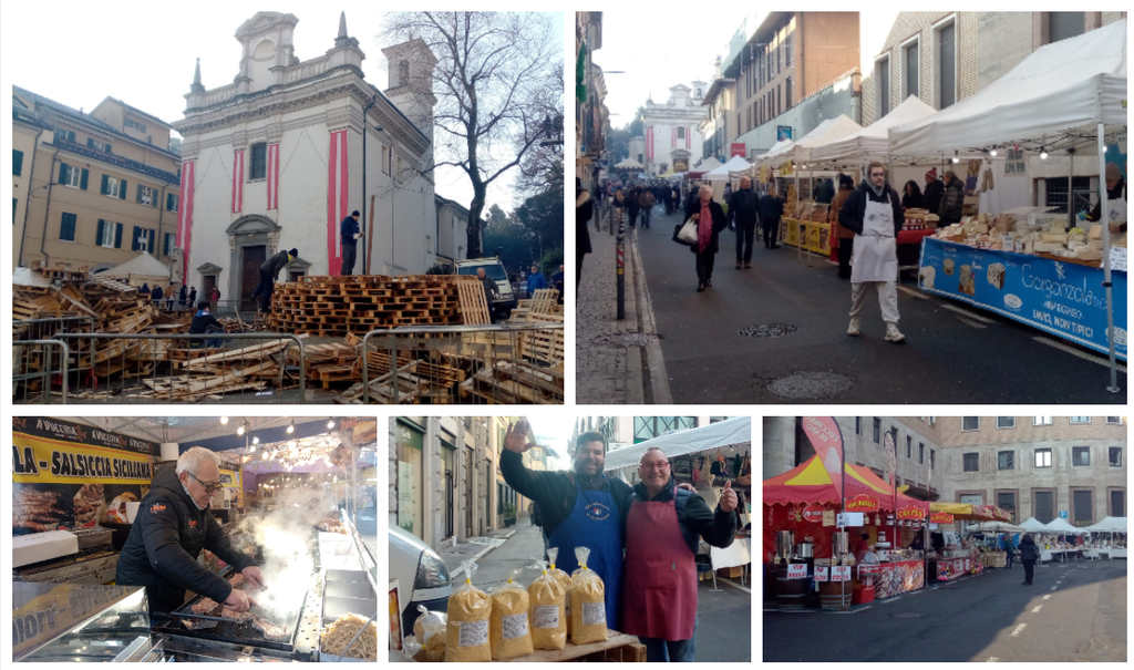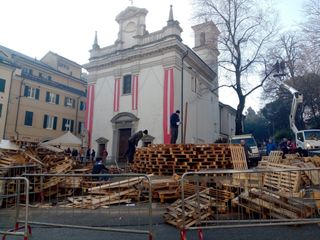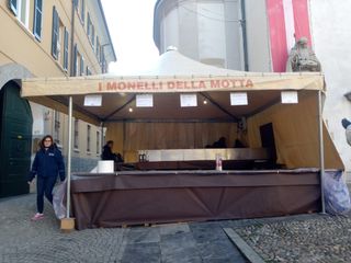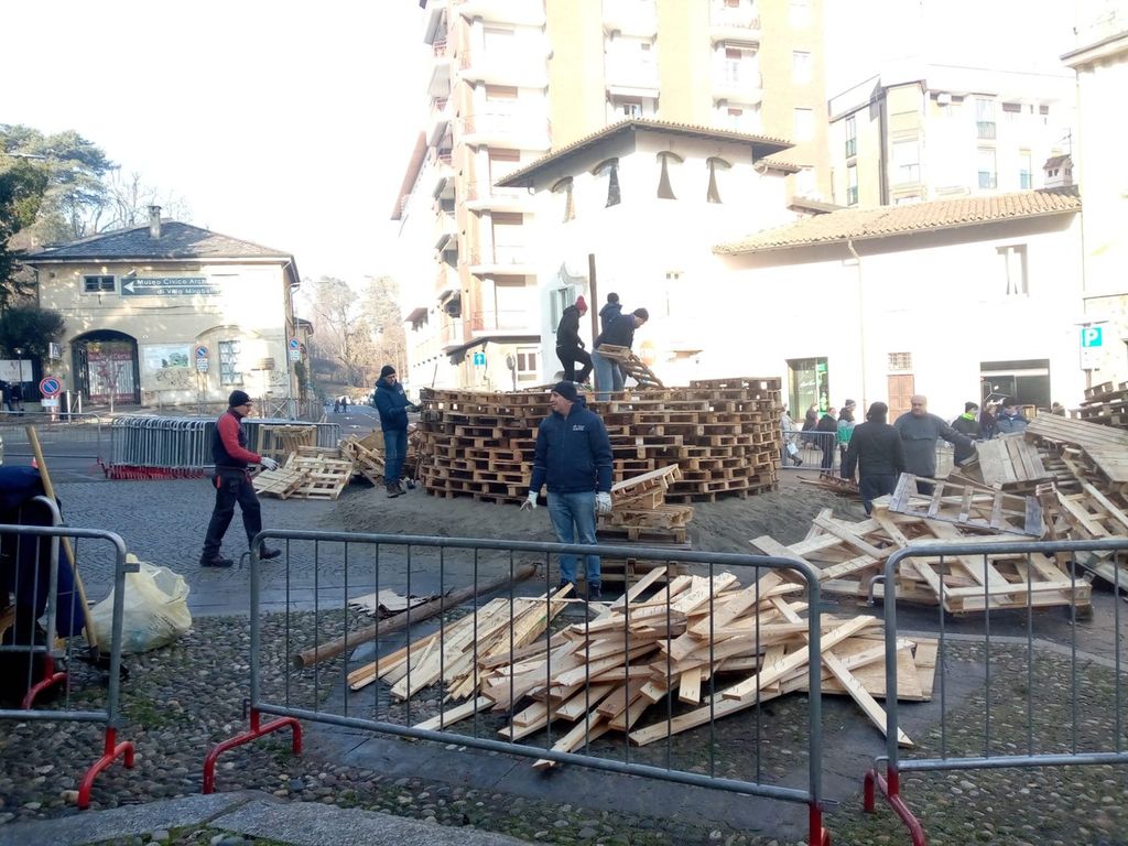 Intanto la pira è quasi pronta: gli operai stanno sistemando e inchiodando i bancali per il falò, mentre i "Monelli della Motta" stanno ultimando il loro stand per la vendita di acqua, vino, il famoso dolce di Sant'Antonio e i biglietti della lotteria.