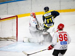 21'19" GOL PERGINE Il canadese Lemay lascia il segno davanti alla gabbia: tris trentino: 1 contro 1, poi arriva davanti a Paller, lo scarta e insacca