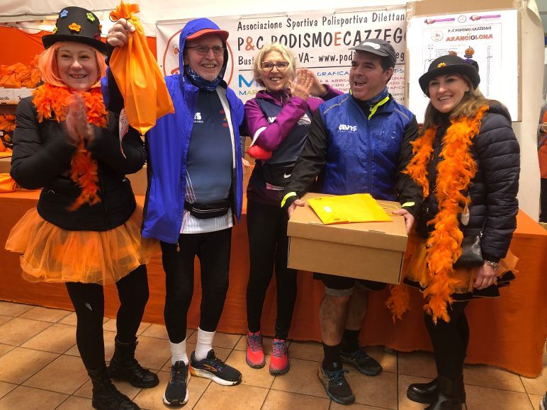 Millecinquecento runner, 150 volontari, 24 gruppi iscritti, 5 mesi di preparazione: numeri eloquenti. Numeri che la dicono lunga sulla 14sima edizione dell’Aranciolona che questa mattina, domenica 11 febbraio, ha colorato la Valle Olona. Una manifestazione riuscita con un’organizzazione di Podismo e cazzeggio curata nei dettagli, nonostante Giove pluvio abbia fatto la sua parte. Pioggerella a parte, la temperatura era perfetta per gli 8 o 13 o 20 km. Si temeva la fanghiglia ma, a parte qualche breve tratto su sterrato, la maggior parte del percorso era su asfalto.