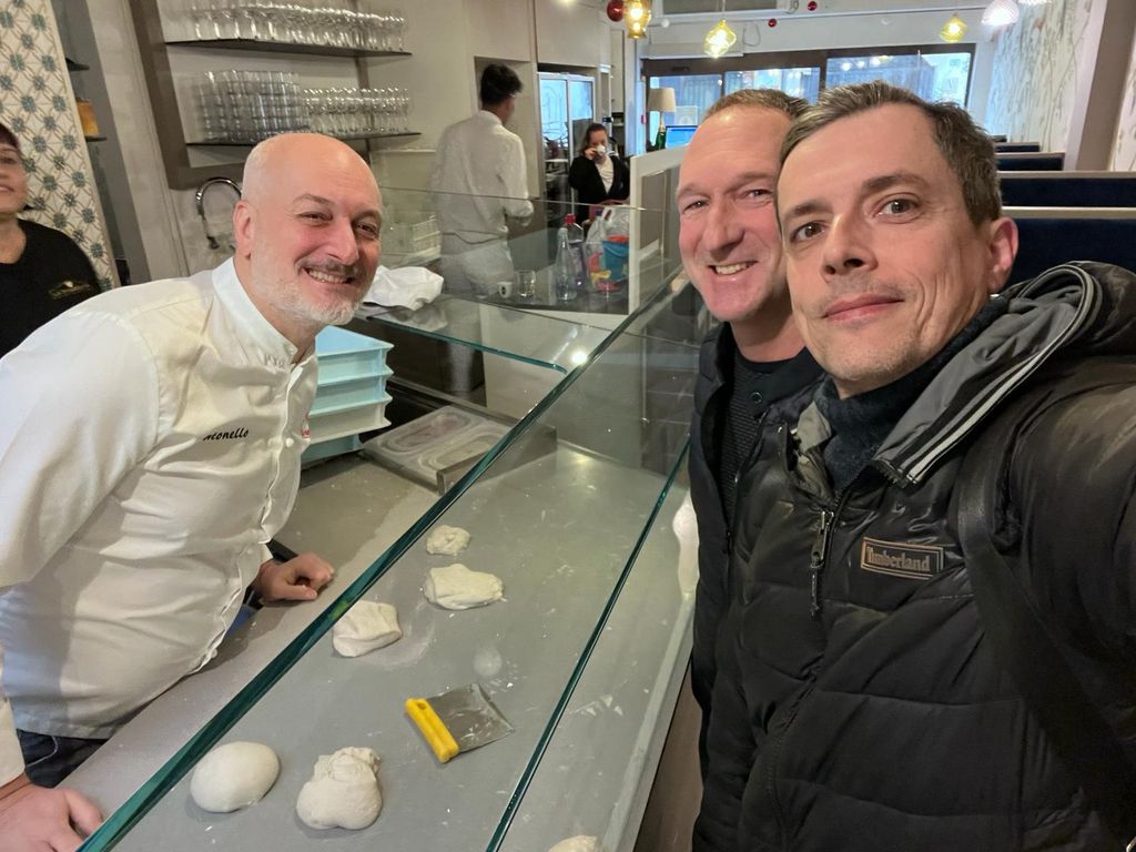 «Sono un appassionato di cucina gourmet - ci confida Antonello - mi piace quando viaggio provare sapori nuovi e frequentare ristoranti stellati, dall'Olanda alla Spagna, dove posso imparare. Proprio i contatti maturati con gli chef e la prima "spinta" da parte Ilario Vinciguerra mi hanno convinto anni fa ad andare oltre all'idea di pizza tradizionale cimentandomi in creazioni originali come la pizza scomposta, mettendo banalmente a parte anche soltanto la mozzarella o la burrata portata qui dalla Puglia, quando non era conosciuta come lo è oggi, o il sushi di pizza. Una serata di svolta? Nel 2013, quando abbiamo organizzato il primo evento con Krug per presentare il nostro menu con il sushi e le tagliatelle di pizza. Il mio sogno? Un progetto di altissima ristorazione a base di pizza, magari in una location come un grande albergo».