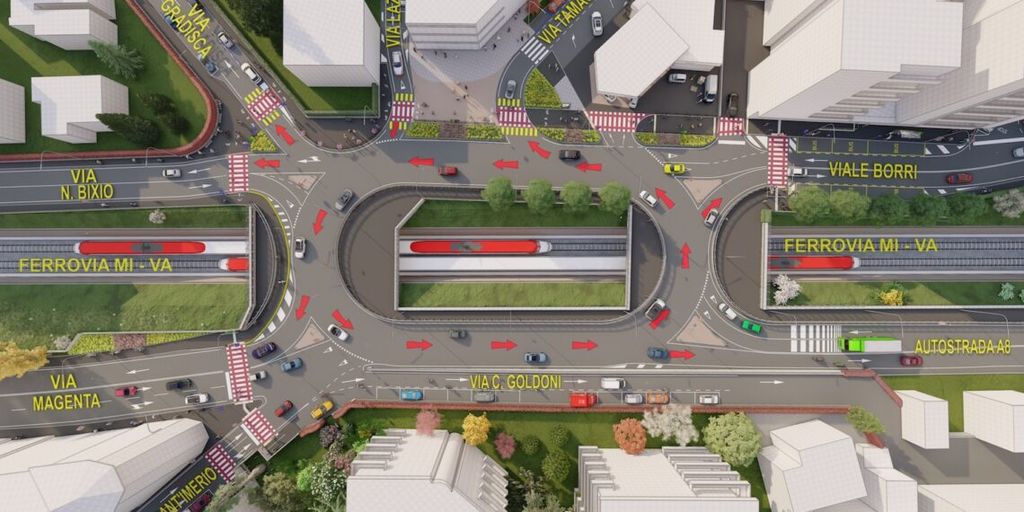 Chi arriva da viale Borri, si immette direttamente nella nuova rotonda: la prima uscita è via Tamagno (attenzione via Lazio diventa solo in uscita), seguono poi le uscite su via Gradisca, via Bixio, infine via Magenta in direzione centro. Oppure è possibile continuare a percorrere la maxi rotonda per imboccare l’entrata del raccordo autostradale in direzione autostrada.