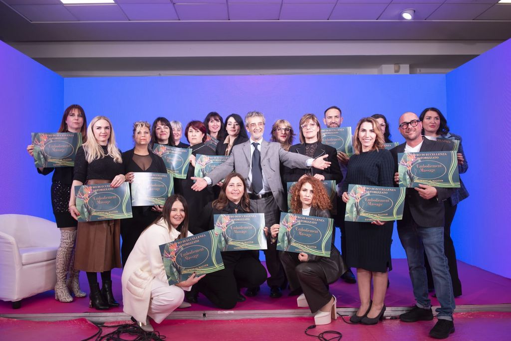 Nel gruppo di lavoro che quest’anno è stato a Sanremo nell’ambito del Salotto delle Celebrità e del Master Vip dei Massaggiatori, in occasione del Festival della Canzone Italiana.