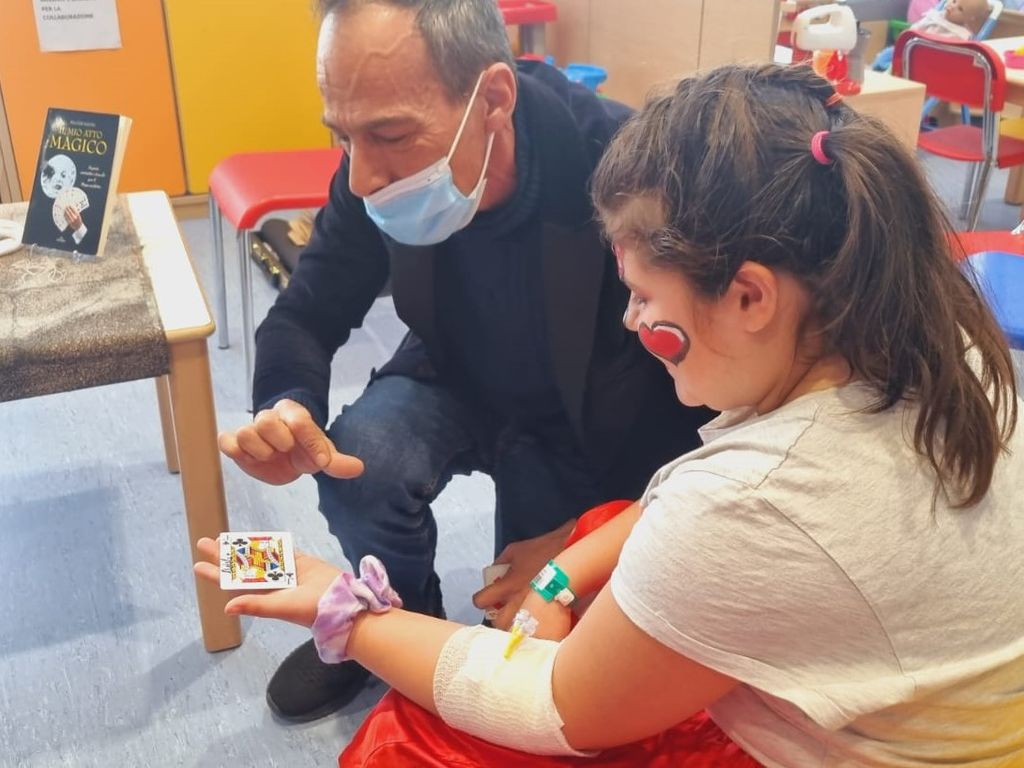 In tutti i reparti Il Ponte del Sorriso ha portato mascherine, travestimenti e il Truccabimbi, così ogni bambino ha potuto trasformarsi in principessa, nell’eroe preferito o nascondersi dietro un personaggio immaginario.