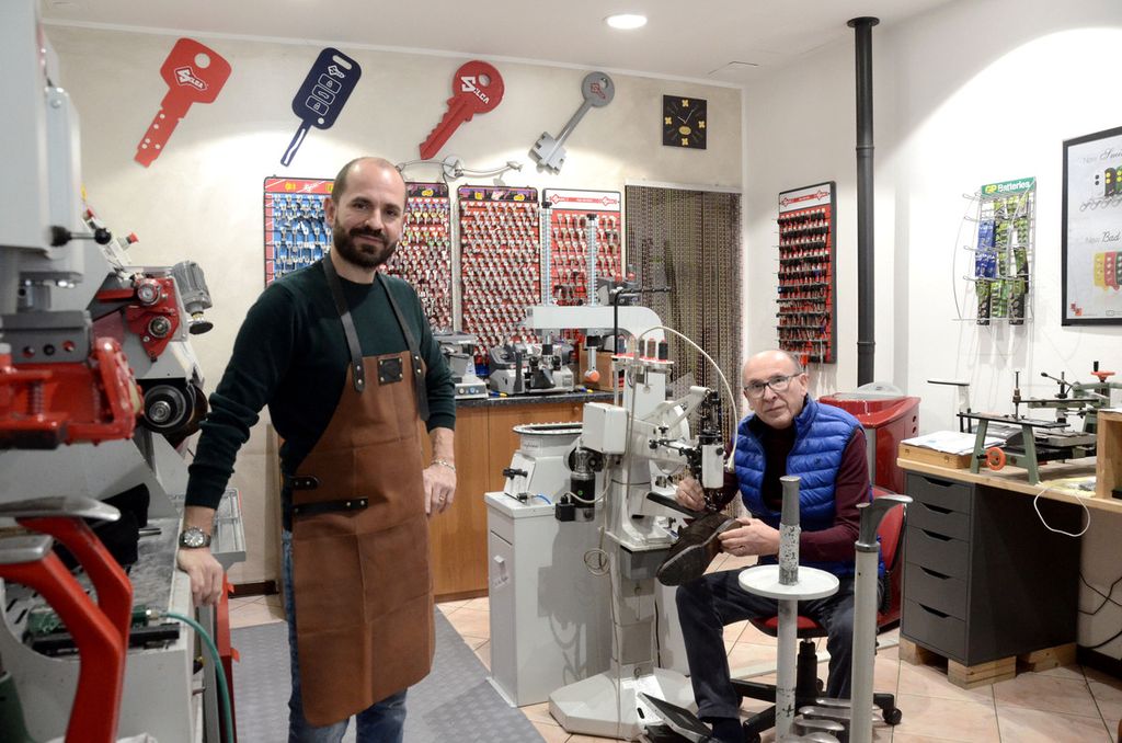 «Lavoriamo ogni tipo di chiave, per porte, cancelletti, cassette delle lettere, quelle a doppia mappa per le porte blindate di un tempo, sostituite dalle punzonate per i nuovi cilindri a norma europea. Le chiavi sono in ottone, anti allergico perché privo di nickel, oppure di ferro più fragili, o di alpacca, le più qualitative. Poi ci occupiamo anche delle chiavi codificate di automobili e motociclette, con il micro trasmettitore inserito nella testa con la codifica del trasponder. Copiamo anche i radiocomandi dei cancelli, porte basculanti e garage. Incidiamo anche targhe per i campanelli con il pantografo».