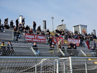 39' Tifosi biancorossi in piedi per applaudire l'uscita di Banfi, sostituito da Musumeci. Solita, immensa generosità per l'attaccante di Cotta