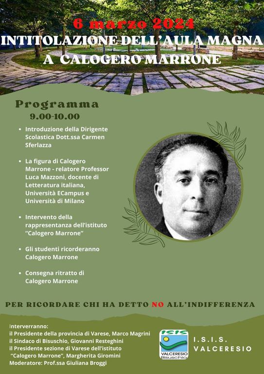 Anche l’ISIS Valceresio tiene viva la memoria di Calogero Marrone, il dipendente dell’ufficio anagrafe del Comune di Varese che durante il regime fascista rilasciò numerosi documenti falsi aiutando ebrei e partigiani.